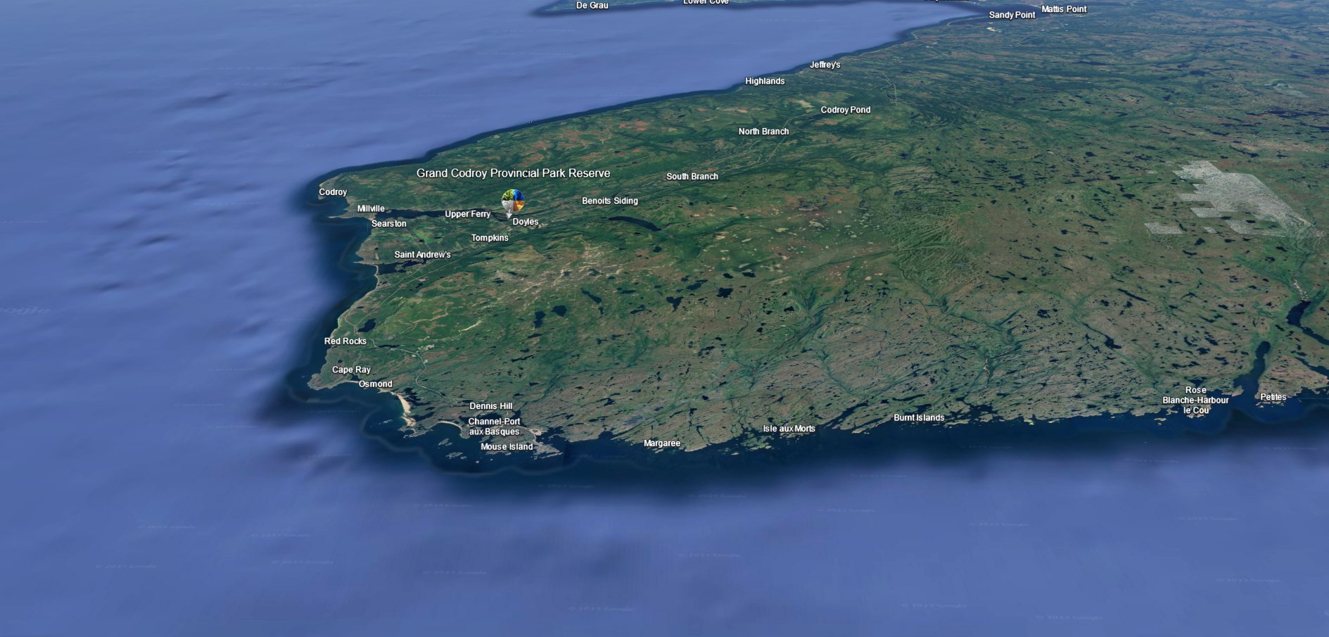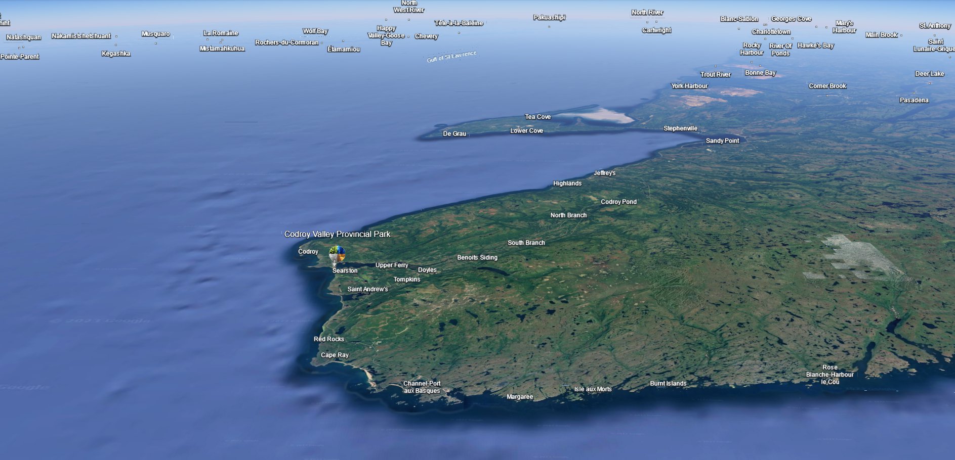 "Codroy" is found in a number of landmarks in the area: Codroy Island, Codroy Pond, Codroy River, Grand Codroy River, Little Codroy Pond, and the Little Codroy River.