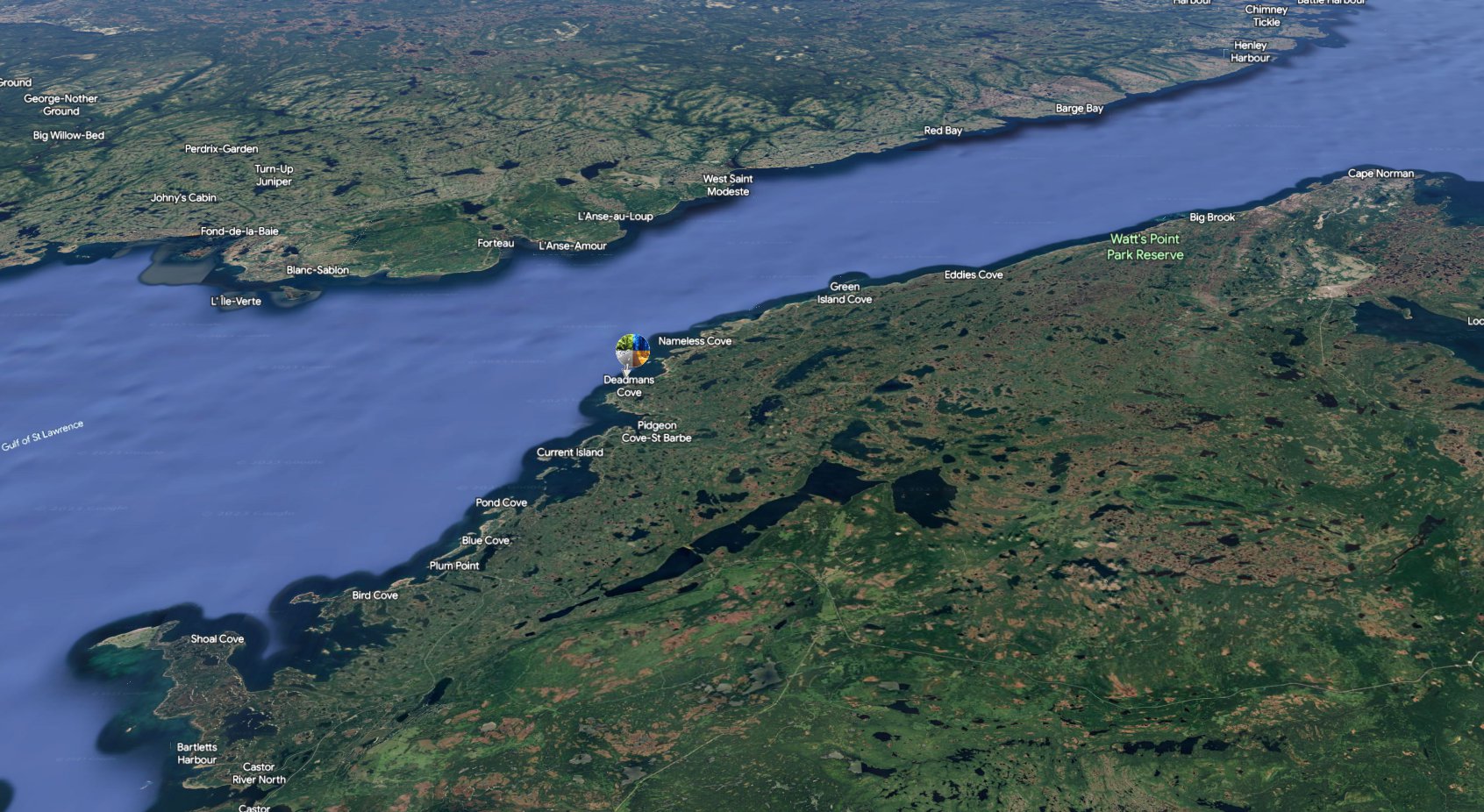 Deadman's Cove in the "north" should not be confused with the Deadman's Cove in the south. Often called Deadman's Bight, this community is near Harbour Breton on the Connaigre Peninsula.