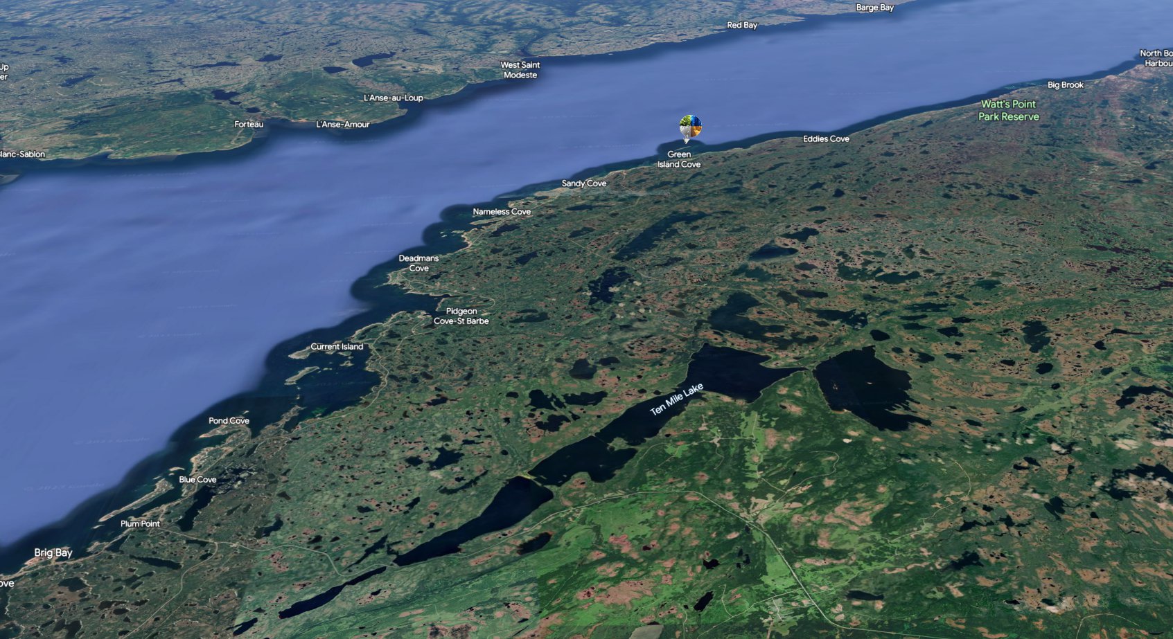 Green Island Brook: According to the NP website Green Island Brook was named for the brook which runs through the community on its way to the Strait of Belle Isle.