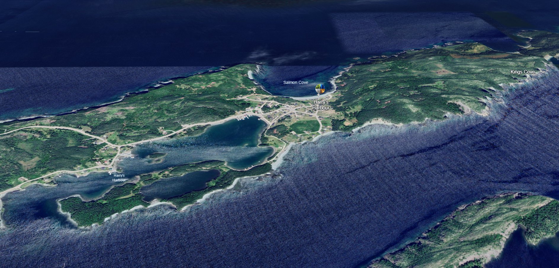 Located in northern Notre Dame Bay, northwest of Springdale, "straddling" two bays, Green Bay and Notre Dame Bay, Harry's Harbour, according to Nellie Moore (1936 cited in the ENL), writing in an article entitled, "Church and Community: 'Things to Remember" "it is not known how the place got its name, but someone by the name of 'Harry' must have fished from the harbour before anyone settled here."