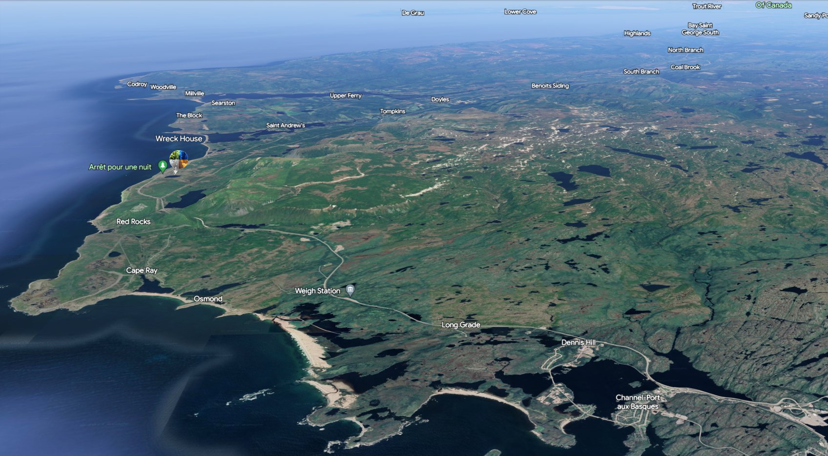 Wreck House: Located at the mouth of the valley of the Little Codroy River, given the notorious windstorms and rough seas that are common in Newfoundland, it is no surprise that there are many communities with the specific "wreck" in their name (e.g., Wreck Cove in Fortune Bay; Wreck Cove between Pie Duck Cove and Point Crewe on the tip of the Burin Peninsula; Wreck Island on the SW coast just west of Burgeo).