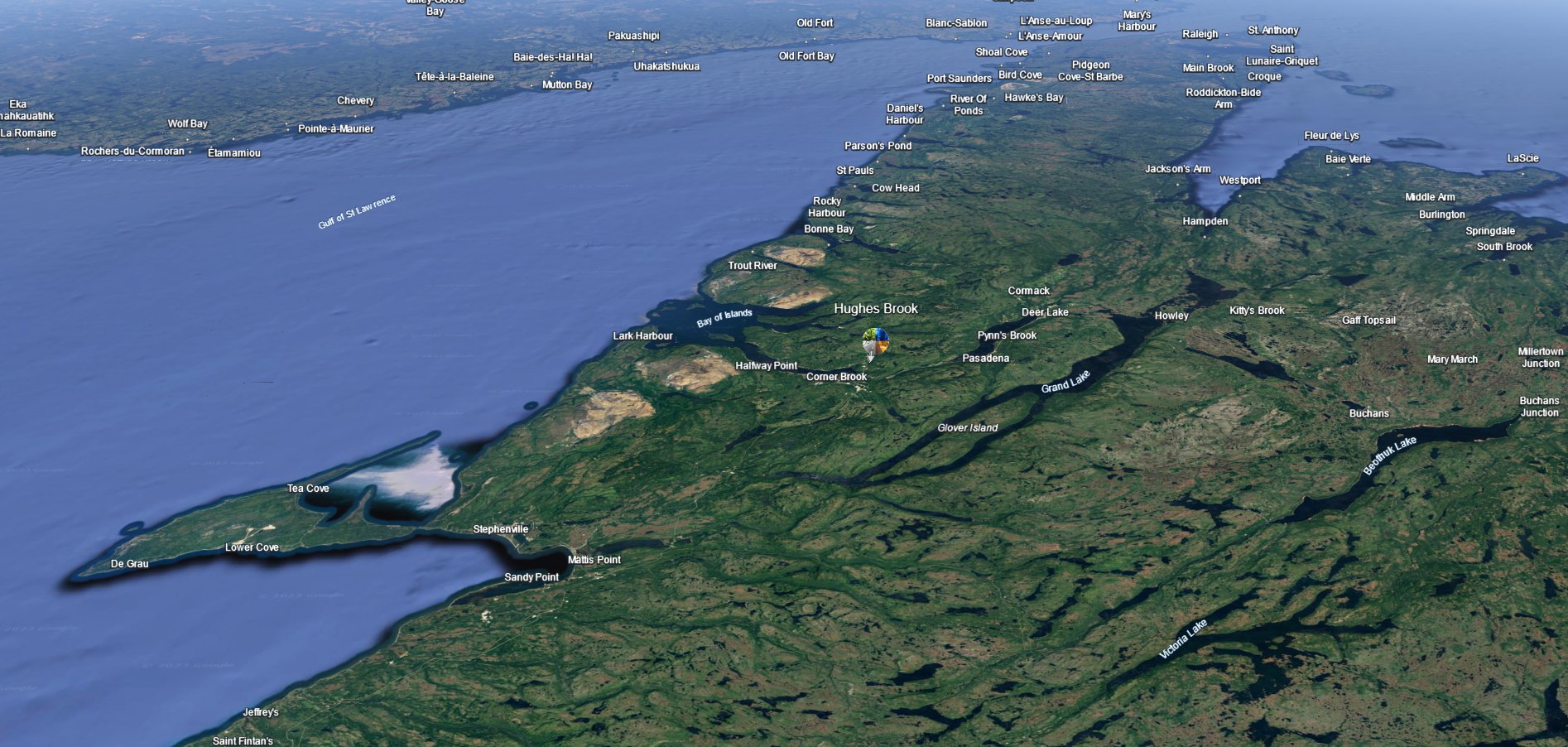 Hughes Brook: Located to the northeast of Corner Brook, in the western Bay of Islands area, on the town's website it is described as follows: